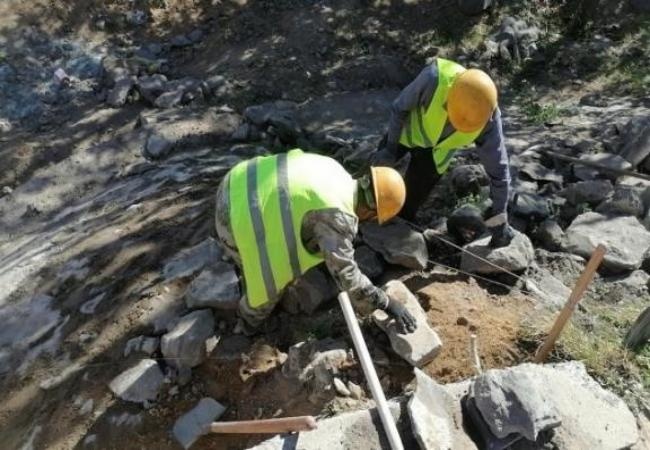 為保障修復(fù)工作高效開(kāi)展,養(yǎng)護(hù)人員對(duì)錐坡進(jìn)行了認(rèn)真地勘察,做了詳細(xì)的損毀程度和位置統(tǒng)計(jì),并根據(jù)實(shí)際情況確定了維修方案。在修復(fù)過(guò)程中,施工隊(duì)伍嚴(yán)格按照《公路養(yǎng)護(hù)技術(shù)標(biāo)準(zhǔn)》進(jìn)行作業(yè),對(duì)錐坡塌陷處進(jìn)行坡面重砌,嚴(yán)格保證施工質(zhì)量。目前已完成運(yùn)煤專(zhuān)線(xiàn)錐坡重砌修復(fù)工作。